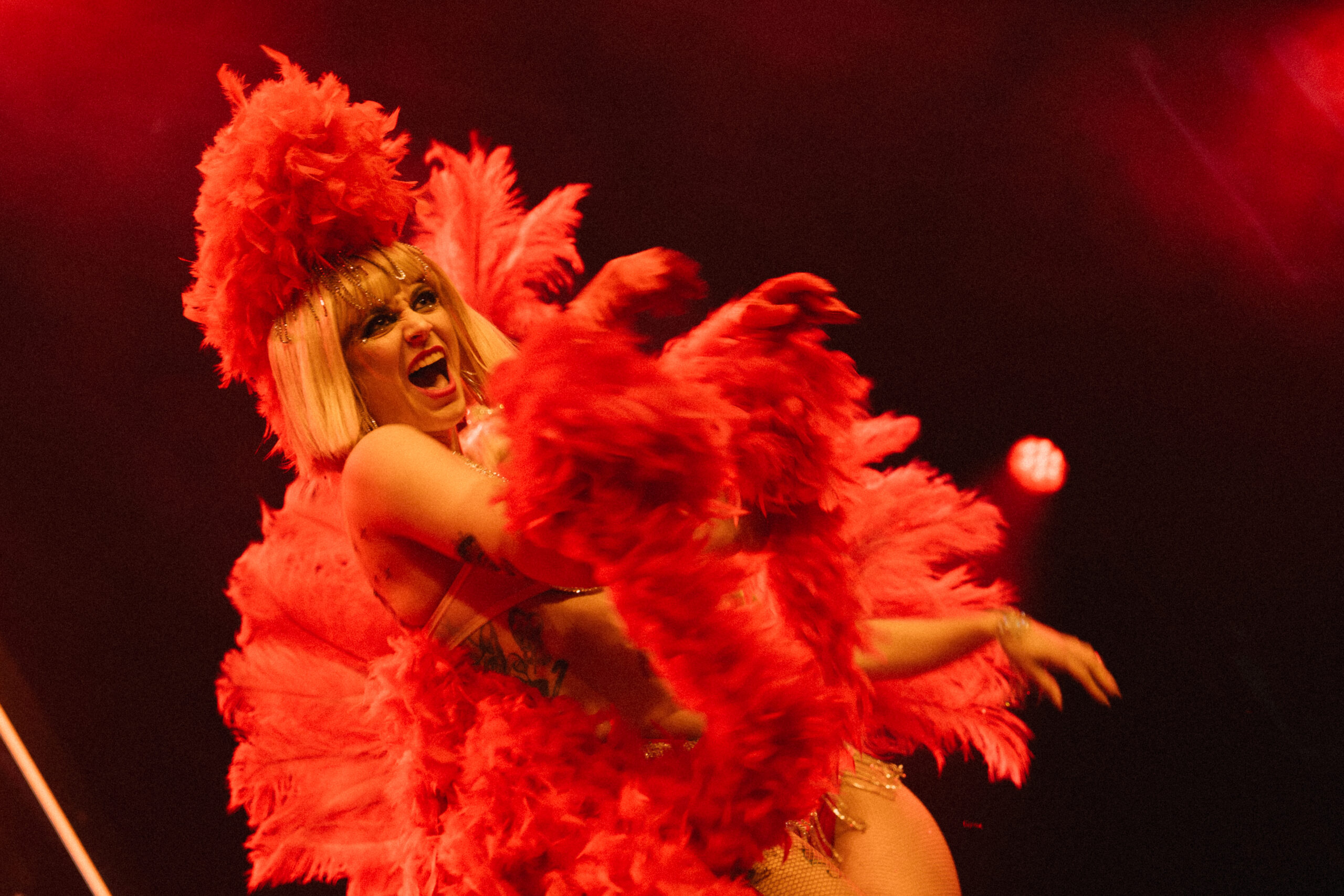 Pluimen vliegen. Glamour schittert. Humor duikt op waar je het niet verwacht. En soms gebeurt het spektakel gewoon vlak naast je tafel.